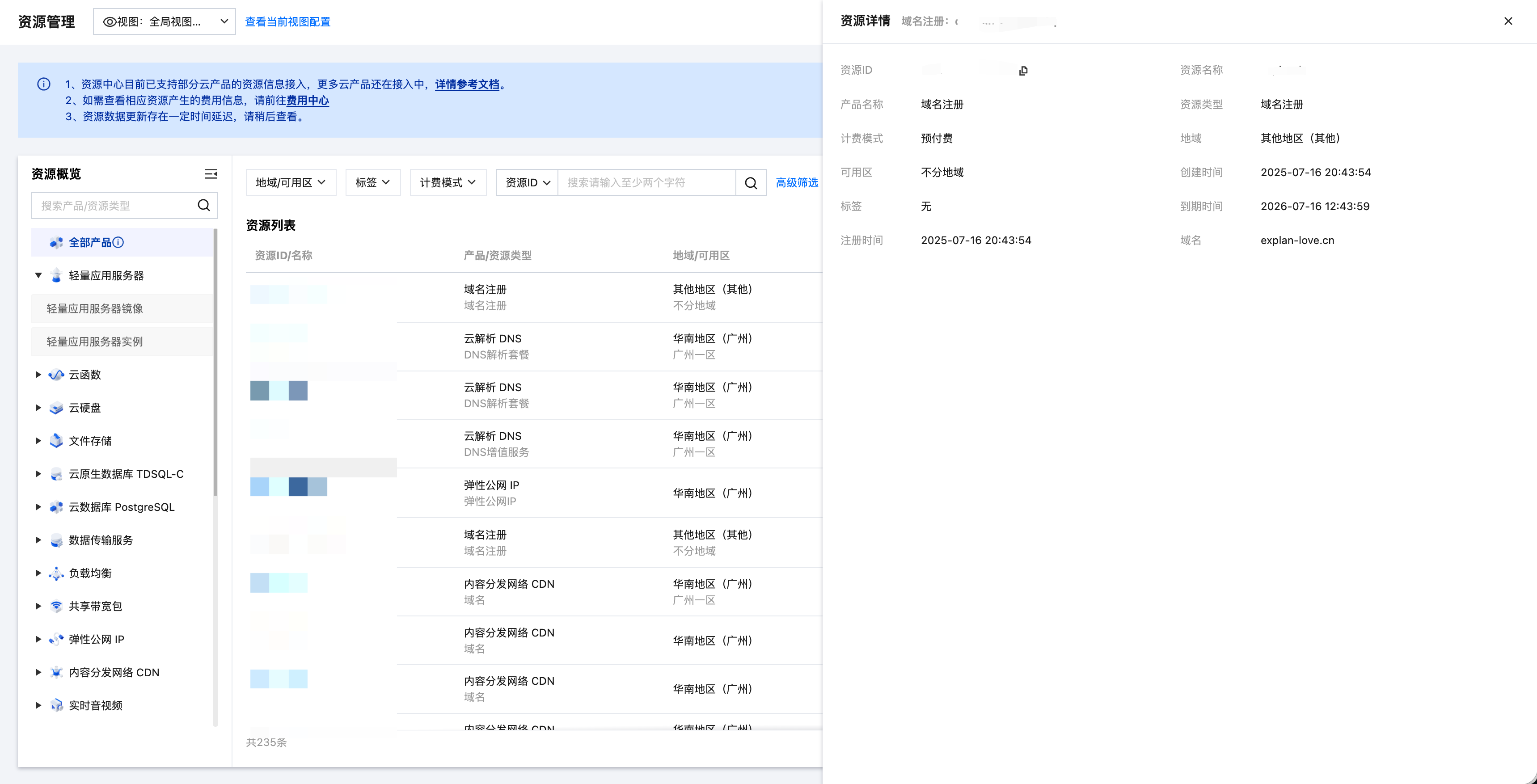 您可以在资源管理页面下浏览和搜索您账号下的云资源。