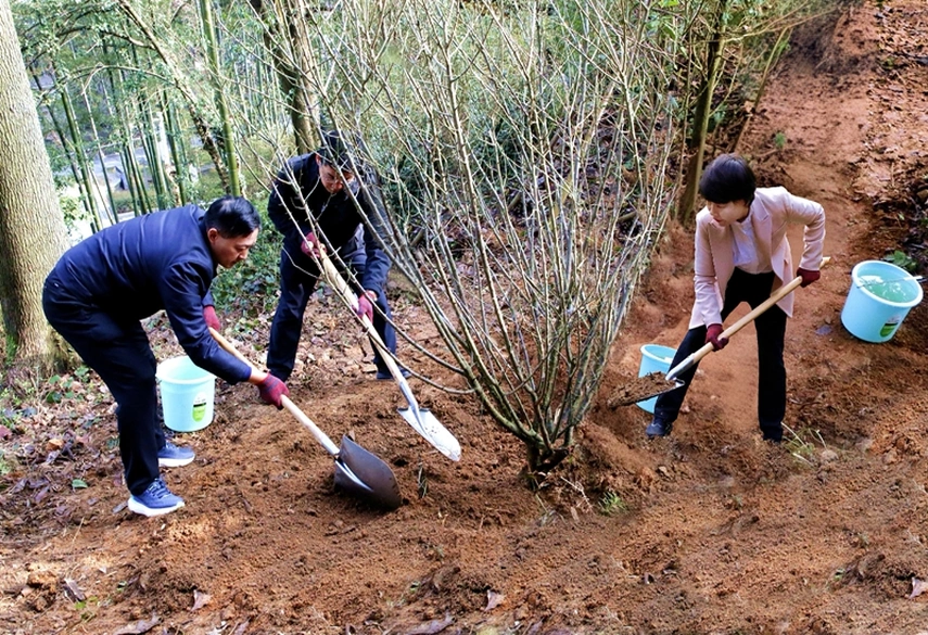 惊蛰启春,万物向荣,3月5日,局党委副书记,局长张希慧,局党委委员,副局长付维华,徐向东,与全局百余名干部职工齐聚滴水洞一号楼,开展2026年义务植树活动 樱花视频,以实际行动为韶山核心景区增添新绿。