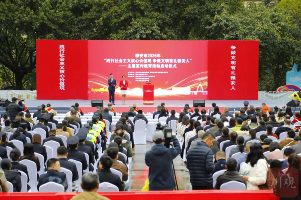3月5日,雅安市举行2026年‘践行社会主义核心价值观争做文明有礼雅安人’主题宣传教育活动启动仪式,发布多项主题活动,涵盖文化活动、文明实践等,通过多种形式推广社会主义核心价值观。