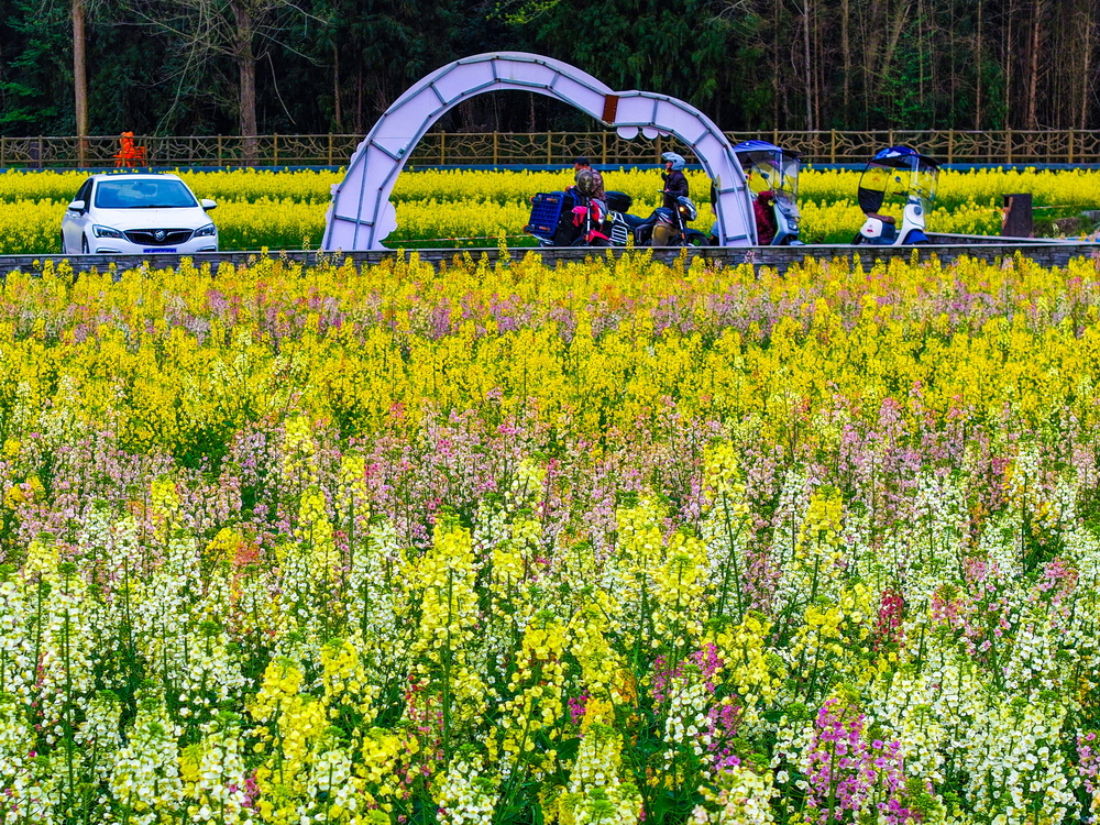 3月5日,雅安市芦山县阳街道大同村的万亩粮经复合园和思延镇青衣芸谷的油菜花竞相绽放,景色迷人。‘跟着熊猫春游雅安’2026年春季宣传推广活动暨芦山县第十一届‘油菜花开·七里夺标’民俗活动春季文旅消费季将于3月10日启动,包括‘七里夺标’全民挑战赛民俗活动、‘声入花海’草坪音乐会、花田剧本杀·田园寻宝记等多项活动。