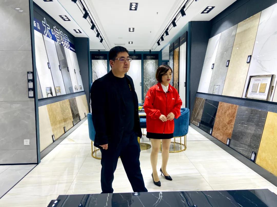 ▲ 设计师季春华进店体验马可波罗瓷砖的卓越品质