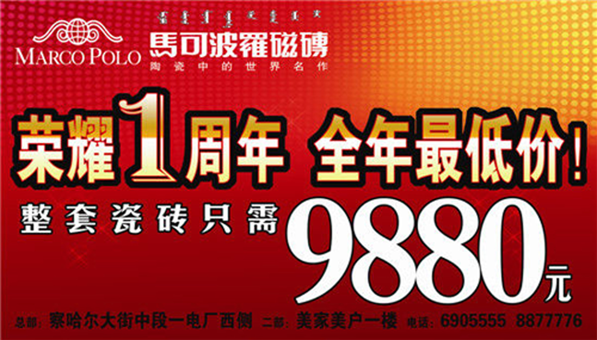 马可波罗瓷砖锡盟旗舰店荣耀一周年 全年最低价